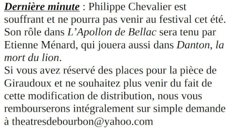 dernière minute | Théâtres de Bourbon